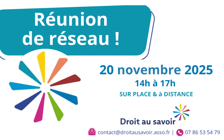 Nous nous retrouverons le 20 novembre 2025 de 14h à 17h à la Fabrique de la… Lire la suite de Prochaine réunion de Réseau de Droit au savoir